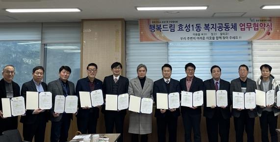 인천시 계양구 효성1동는 지난 16일 보장협의체와 함께 동 보장협의체 중심의 복지공동체인 ‘행복드림 효성1동 복지공동체’ 구성을 위한 업무협약을 체결했다.