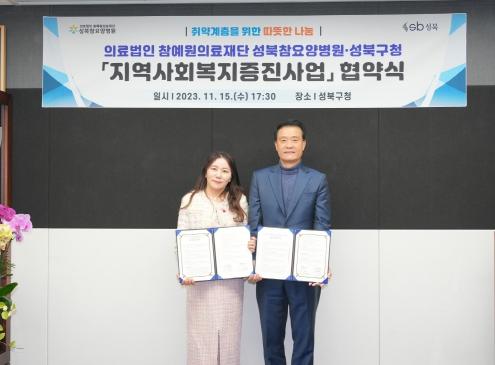 지난 11월 15일, 서울 성북구청과 의료법인 참예원의료재단 성북참요양병원이 성북구 취약계층 지원을 위한 '지역사회복지증진사업' 업무 협약을 체결했다.