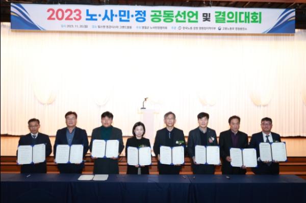 이번 행사는 지역 고용노동 현안에 대해 노사민정이 공동 실천 노력을 결의하고, 지역발전과 지역경제활성화를 위해 노사가 상생 협력하고자 마련됐으며 지역 노사가입조직 임직원과 노사민정 관계자 등 200여 명이 참석했다.