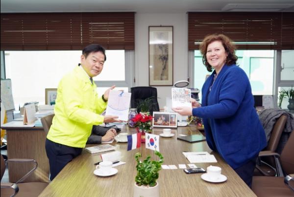 이날 탄소중립을 실천하면서 시민들의 삶의 질을 높일 수 있는 도시 형태에 대한 의견을 공유하는 자리를 가졌다. Chaire-ETI의 ‘15분 도시 백서’와 이 구청장의 ‘동대문을 걷다’ 저서를 상호 교환하기도 했다.