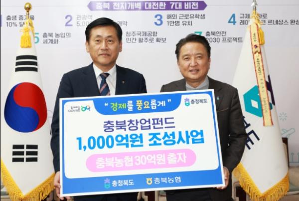 이번 협약은 민선 8기 공약 제1호 사업인 충북 창업펀드 1000억 조성사업에 농협은행 충북본부가 적극 참여하기로 결정하면서 마련됐다.