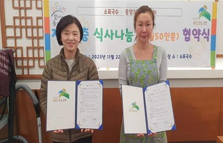협약 내용은 소표국수가 동주민센터에서 추천하는 관내 저소득 어르신에게 음식점을 운영하는 동안 매월 50인분의 식사를 지속적으로 지원한다는 것이다.