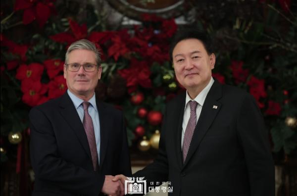 찰스 3세 국왕의 초청을 받아 영국을 국빈 방문 중인 윤석열 대통령은 11월 22일 오후 키어 스타머(Sir Keir Rodney Starmer) 영국 노동당 당수를 접견했다.
