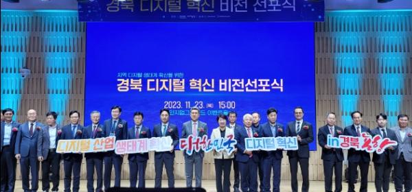 경북도는 23일 포항 체인지업그라운드에서 경북 디지털 생태계 조성 방향과 의지를 발표하는 ?경북 디지털혁신 비전선포식? 을 개최했다.
