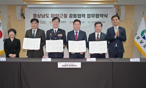 경남도는 23일 오전 도청 도정회의실에서 마약근절을 위한 공동협력체계 구축과 예방활동 추진을 위해 도 경찰청, NH농협은행 경남본부, 한국마약퇴치운동본부 경남지부와 업무협약을 체결했다.