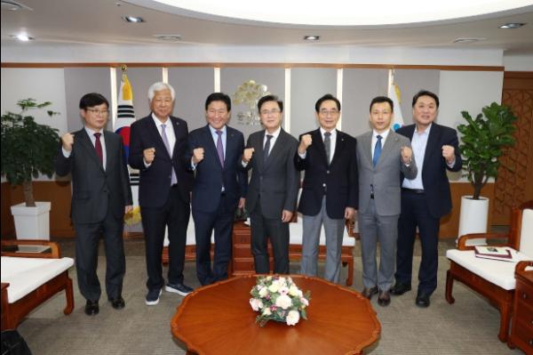 김 지사는 23일 도청 접견실에서 22대 월드옥타 회장에 취임한 박종범 회장과 주대석 조직관리 부회장, 홍해 차세대 부회장, 김우재 명예회장을 만나 취임을 축하하고, 내년 대회 개최 관련 의견을 주고 받았다.