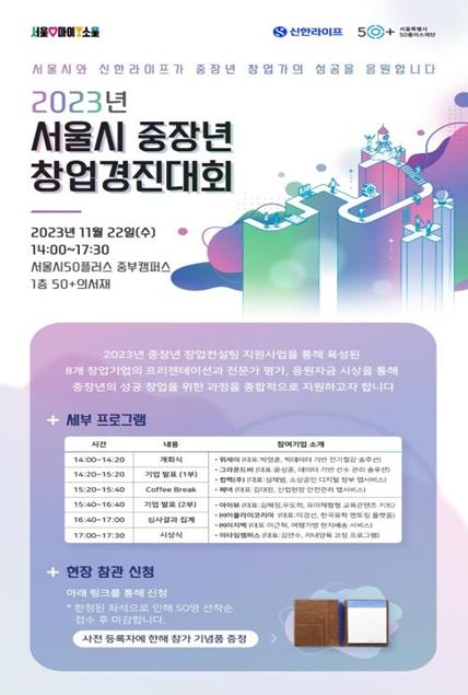 서울시가 서울런4050 정책과 연계하여 중장년 창업지원에 나선다. 서울시50플러스재단은 2023년 창업컨설팅 지원 사업으로 육성한 우수 창업기업을 대상으로 22일 창업경진대회를 열고 3개의 최우수팀과 5개의 우수팀을 선정해 발표했다.