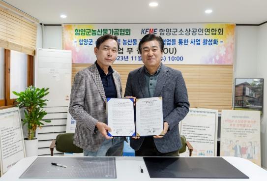 함양군농산물가공협회와 함양군소상공인연합회는 지난 22일 함양군소상공인지원센터(위치: LX Z:IN인테리어)에서 함양군 소상공인 및 농산물 가공업체들의 지원을 활성화하기 위한 업무협약을 체결했다.