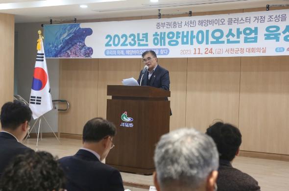 서천군이 24일 서천군청 대회의실에서 ‘2023년 해양바이오산업 육성 전략 포럼’이 개최됐다.
