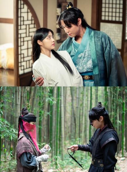 박지훈(사조 현, 악희 역)과 홍예지(연월, 계라 역)의 조합이 기대되는 가운데 오늘 24일(금) 두 주연 배우의 투샷이 담긴 스틸이 처음 공개됐다. 가까이 밀착한 채 시선을 맞추고 있는 두 사람의 모습에서는 벌써부터 심장 떨리는 로맨스가 기다려진다.