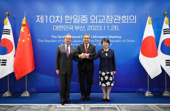 제10차 한일중 외교장관회의가 11월 26일 15:00-16:30 간 부산에서 박진 외교부 장관의 주재로 가미카와 요코(上川陽子) 일본 외무대신, 왕이(王毅) 중국 외교부장 겸 정치국 위원이 참석한 가운데 개최됐다.