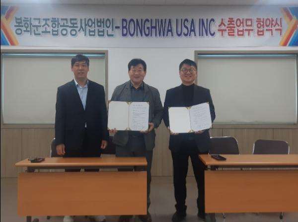 봉화군조합공동사업법인은 24일 봉화군조합공동사업법인 사무실에서 미국 소재 농식품 유통업체봉화USA와 수출업무협약식을 체결했다.
