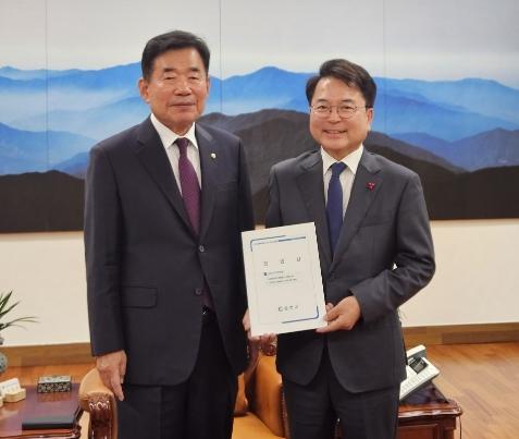 국회를 방문한 육동한 춘천시장은 국회의장에게 세계태권도연맹(WT) 본부 건립 사업, 강원연구개발특구 기본구상 용역비 국비 반영을 건의했다.
