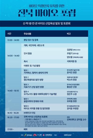 전북도는 이번 포럼을 통해 전세계가 바이오 경제로 진입함에 따른 바이오 산업 동향 파악과 전북 바이오 방향성 모색 등으로 차별화된 바이오특화단지 유치 전략 수립에 도움이 될 것으로 기대하고 있다.
