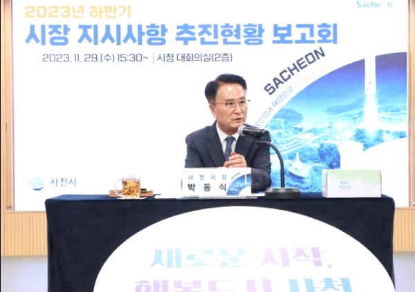 사천시는 29일 오후 시청 대회의실에서 박동식 시장 주재로 부시장, 국·소장, 소관 부서장 등 30여 명이 참석한 가운데 시장 지시사항 추진현황 보고회를 개최했다.