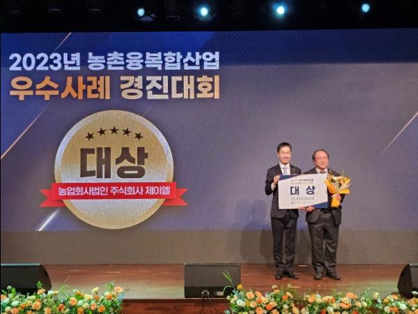 대상을 수상한 문경시의 “제이엘(OmyNara)(대표 이종기)”은 2008년 설립된 주류 제조업체로 문경 특산물인 오미자를 원료로 한 세계 최초 오미자 스파클링 와인 개발에 성공했다. 스파클링 와인인 “결”이 2022년 바이든 대통령 방한 만찬 건배주로 선정될 만큼 우수한 경영체로 평가되고 있으며, 2015년 농림축산식품부의 농촌융복합산업 인증을 받았다.