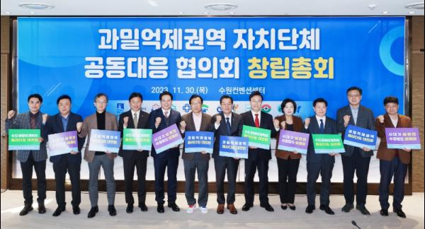 과밀억제권역 12개 지자체 시장(부시장·국장) 등은 11월 30일 수원컨벤션센터 다이닝룸에서 공동대응협의회 창립총회를 열고, 이재준 수원특례시장을 대표회장으로 선출했다. 또 운영 규정(안) 등 안건을 심의했다.