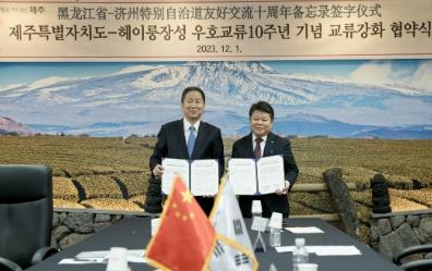 올해 제주도-헤이룽장성 교류 10주년을 맞아 제주를 찾은 헤이룽장성 부비서장 일행은 변덕승 제주도 관광교류국장을 만나 양 지역 간 교류 강화를 위한 의향서를 체결하고 교류 활성화 방안을 모색했다.