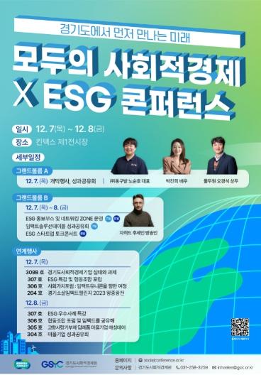 경기도사회적경제원은 7일부터 8일까지 고양시 킨텍스 제1전시장에서 ‘모두의 사회적경제×ESG 콘퍼런스’를 개최한다.