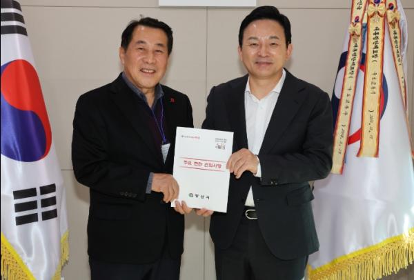 나동연 양산시장이 원희룡 국토교통부 장관에게 지역 현안 해소를 위해 정부 차원의 적극적인 지원을 요청했다.