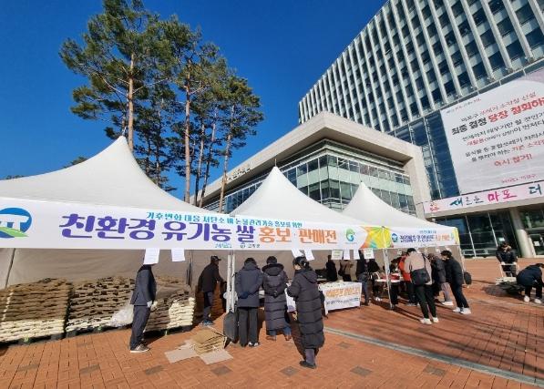 이번 홍보·판매전은 고창군에서 농림축산식품부 공모사업으로 추진 중인 ‘저탄소 벼 논물관리 기술보급 시범사업’으로 송암·여곡 단지에서 재배된 쌀과 ㈜황토배기유통의 절임배추, 양념 세트를 홍보 및 판매하기 위해 추진됐다.