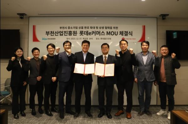 부천산업진흥원은 지난 7일 롯데쇼핑(주)e커머스사업부와 ‘부천시 중소벤처기업 상품 판로 확대 및 상생 협력 지원’을 위해 업무협약을 체결했다고 밝혔다.