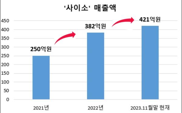 11월 말 기준 ‘사이소’ 매출액은 421억원으로 전년 동기 322억원 대비 31%가 증가했다.