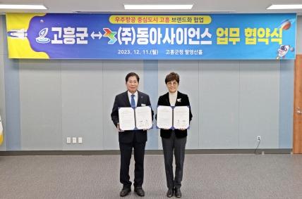 고흥군은 11일 국내 유일의 과학 전문 미디어인 ㈜동아사이언스와 ‘우주항공중심도시 고흥’ 브랜드 경쟁력 강화를 위한 업무협약을 체결했다고 밝혔다.
