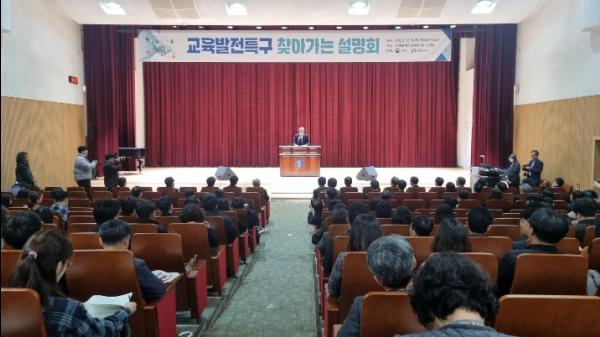 설명회는 ▲교육발전특구 추진계획 ▲교육개혁 과제 ▲학교복합시설 공모계획 순으로 진행됐다.