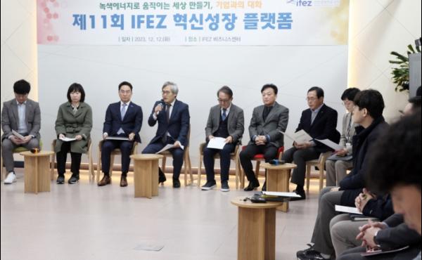 인천경제자유구역청은 12일 송도국제도시 G타워에서 ‘녹색 에너지로 움직이는 세상 만들기, 기업과의 대화-제11회 인천경제자유구역(IFEZ) 혁신성장 플랫폼’을 개최했다고 밝혔다.