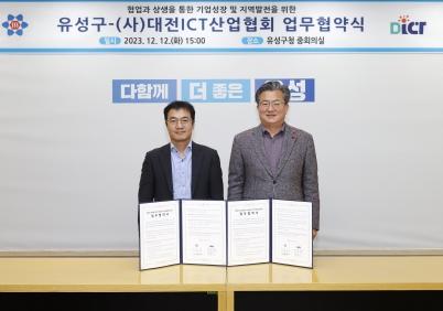 대전 유성구는 12일 유성구청 중회의실에서 (사)대전ICT산업협회와 지역 중소(벤처)기업의 전문적 지원 및 상호협력 체계 구축을 위한 업무협약을 체결했다고 밝혔다.