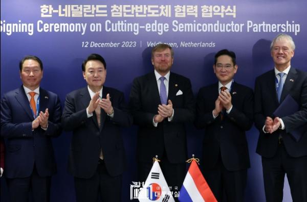 윤석열 대통령은 오늘(현지시간 12. 12, 화) 네덜란드의 빌렘-알렉산더 국왕과 함께 네덜란드의 반도체장비 생산기업 ASML의 본사를 방문했다. 이곳에서 양국 정상은 한국과 네덜란드, 유럽의 주요 반도체 기업 대표들과 간담회를 갖고 차세대 극자외선(EUV) 노광장비 생산현장을 함께 둘러봤다. ASML이 소재한 네덜란드의 벨트호벤은 수도 암스테르담에서 이동에만 왕복 4시간이 소요되며, 이번 ASML 방문은 그간 대통령 해외 순방 중 첫 번째 현지 기업 방문이다.