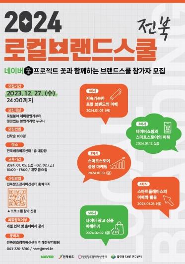 ‘네이버×전북 로컬 브랜드 스쿨’은 2024년 시작과 함께 1월 5일부터 5주간 매주 금요일 전북테크비즈센터 1층 대강당에서 진행된다.