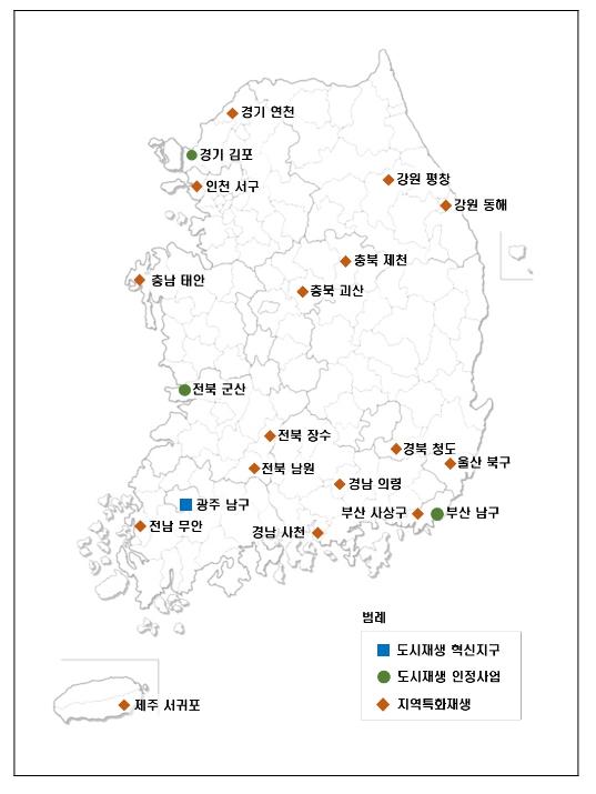 한편, 이번에 선정된 신규사업지 20곳 중 18곳(90%)이 비수도권이며, 특히, 지방 중·소도시(인구 50만 이하) 비중은 95%로 국토의 균형발전에도 기여할 것으로 전망된다.