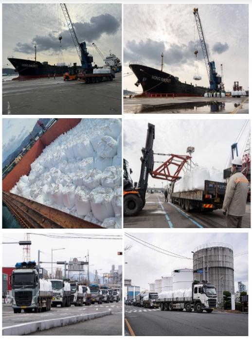 우리 기업이 제3국과 계약한 물량 중 베트남에서 수입한 요소 5,500톤(약 0.9개월분)이 12월 16일 오전 울산항 2부두에 입항하여 하역을 시작하였다. 관세청에서 해당 물량에 대한 신속 통관을 지원하고 있고 요소수 제조 공장으로의 입고도 원활히 이루어지고 있다.