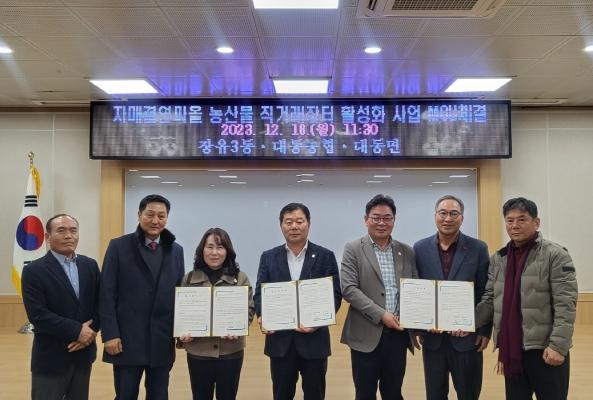 김해시 대동면은 18일 장유3동 행정복지센터에서 대동농협, 장유3동과 농산물 직거래장터 개설과 활성화를 위한 업무협약(MOU)을 체결했다.