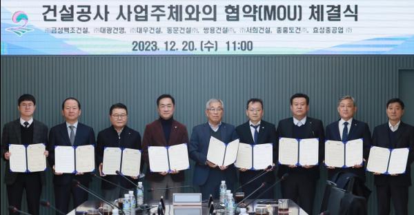 8개 건설회사와 지역건설협회, 평택상공회의소, 평택도시공사 등 7개 지역단체가 참여한 이번 협약은 지역의 건설사업 활성화를 위해 진행됐다.