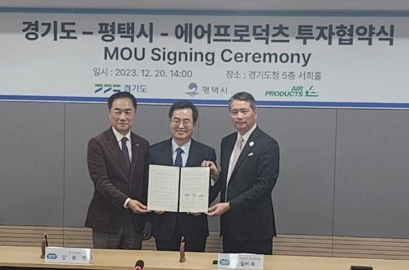 평택시는 평택 포승(BIX)지구 내 세계적인 산업용 가스 업체인 에어프로덕츠와 청정그린수소 생산공장 설립을 위한 투자협약을 20일 체결했다고 밝혔다.