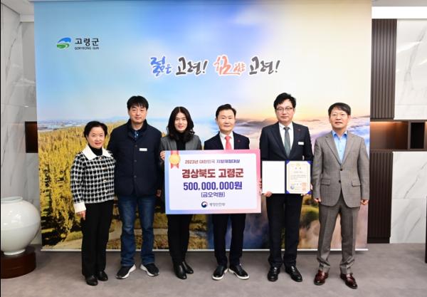 고령군은 지난 12월 19일 행정안전부 주관으로 정부서울청사 별관에서 열린 ‘제16회 대한민국 지방재정대상’시상식에서 국무총리상 수상과 특별교부세 5억원을 받았다.