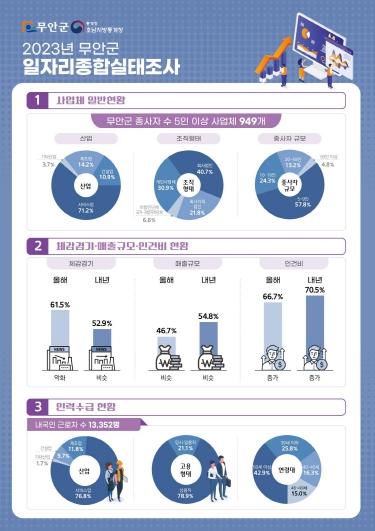 전남 무안군은 지난 7월 28일부터 8월 17일까지 ‘2023년 무안군 일자리종합실태조사’를 실시하고, 12월 21일 그 결과를 공표했다.