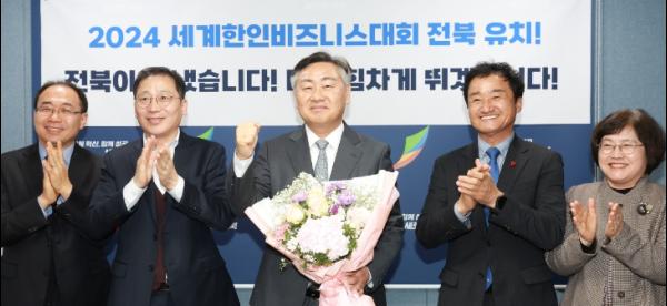전북도의 첫 골은 ‘세계한인비즈니스대회’에서 터졌다. 국내외 한인 글로벌 비즈니스 협력행사인 ‘2024년 세계한인비즈니스 대회’유치에 성공한 것. 전북은 컨벤션이 없다는 약점에도 유력한 경쟁지였던 인천과 제주를 제쳤다. 김관영 도지사의 프레젠테이션과 전방위 설득 전략이 개최 결정의 열쇠를 쥔 각국 운영위원들의 마음을 사로잡았다는 후문이다.