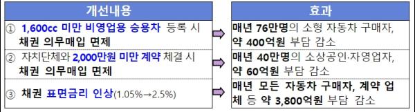 그 결과 사회초년생, 신혼부부 등 약 76만 명의 자동차 구매자가 부담하는 채권 매도 비용이 연간 400억 원 정도 감소됐다.