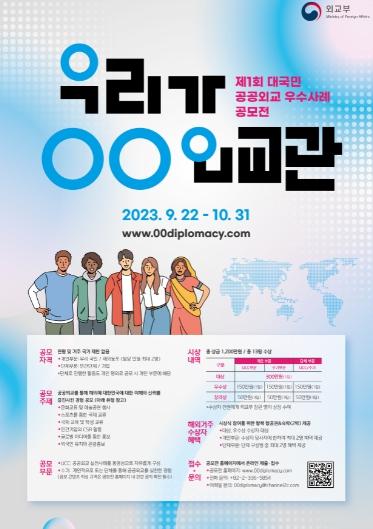 외교부는 우리의 정책, 지식, 문화 등을 통해 외국 국민의 이해와 신뢰를 증진시키는 공공외교 활동을 전개하고 있으며, 우리 국민들의 공공외교 활동 참여를 확대하기 위한 다양한 노력을 지속하고 있다. 이러한 노력의 일환으로, 올해 '제1회 대국민 공공외교 우수사례 공모전'을 개최했다.