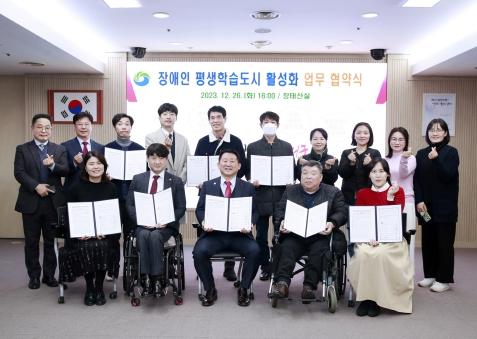 이번 협약은 관내 장애인의 평생학습 활성화 기반 마련을 위한 기관 간 네트워크 구축의 일환으로 장애인 평생학습 서비스 확대와 사업 운영에 상호 협력해 장애인 평생학습 활성화로 장애인 삶의 질 향상을 위해 추진됐다.