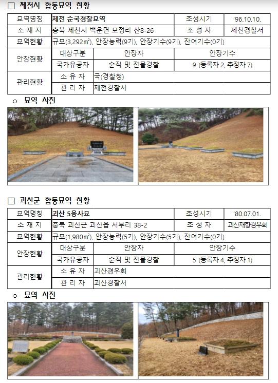 한편, 국가보훈부는 2021년 2월 서울 수유리 애국선열 묘역을 국가관리묘역으로 처음 지정한 이래 이번 충북 제천시 및 괴산군 경찰합동묘역까지 총 14곳을 국가관리묘역으로 지정했다.