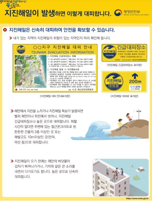 이한경 재난안전관리본부장은 “정부는 지자체와 함께 지진해일 대응체계를 점검하여 미비점을 보완하고 교육·홍보도 강화해 나가겠다”라고 밝혔다.