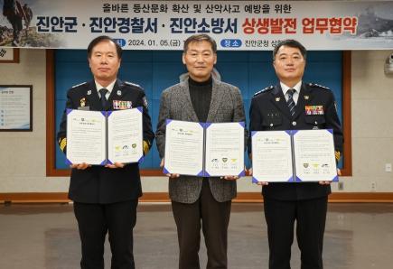 군에 따르면 그 첫 행보로 5일 군청 상황실에서 진안경찰서, 진안소방서와 함께 올바른 등산 문화 확립과 공립등산학교 공모사업 유치를 위한 업무협약을 체결했다.