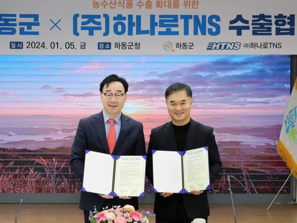 하동군은 5일 군청 소회의실에서 종합물류 회사 ㈜하나로티앤에스와 해외시장 공동진출을 위한 수출업무 협약을 체결했다고 밝혔다.