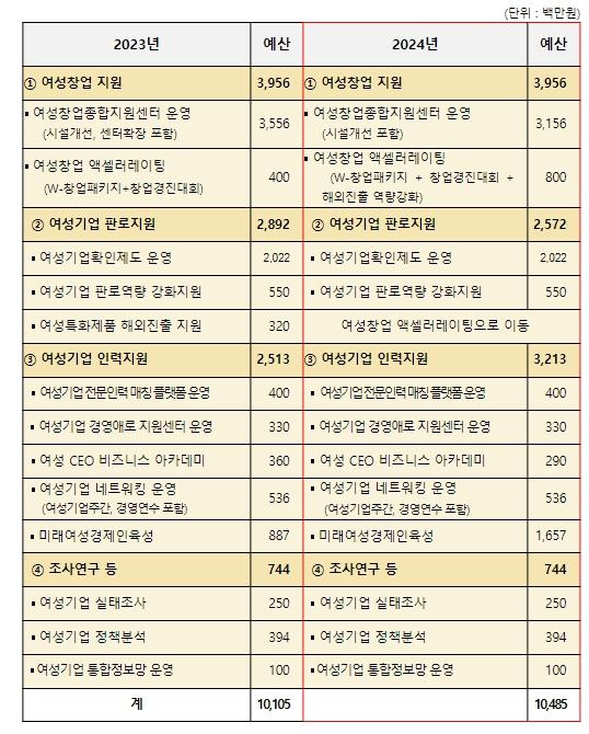 2024년 ‘여성기업육성사업’ 주요 내용은 다음과 같다.