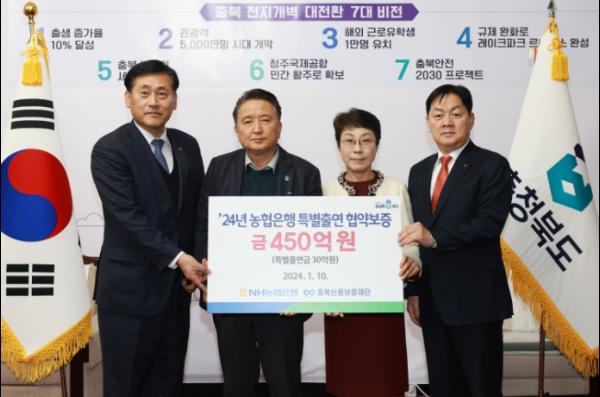 김영환 충북지사는 “지속되는 고금리?고물가로 어려운 상황에서이번 NH농협은행 특별출연 업무협약을 통해 적극적 보증지원으로 소기업?소상공인의 자금난 해소에 도움이 되길 바란다”고 밝혔다.